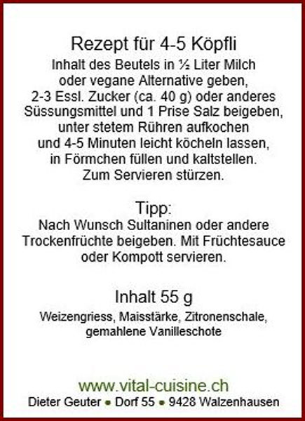 Zusammensetzung: Weizengriess, Maisstärke, Zitronenschale, Vanilleschoten
