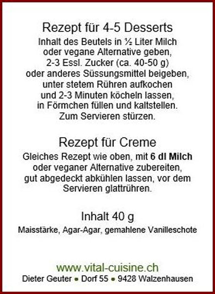 Zusammensetzung: Maisstärke, Agar-Agar, Vanilleschote